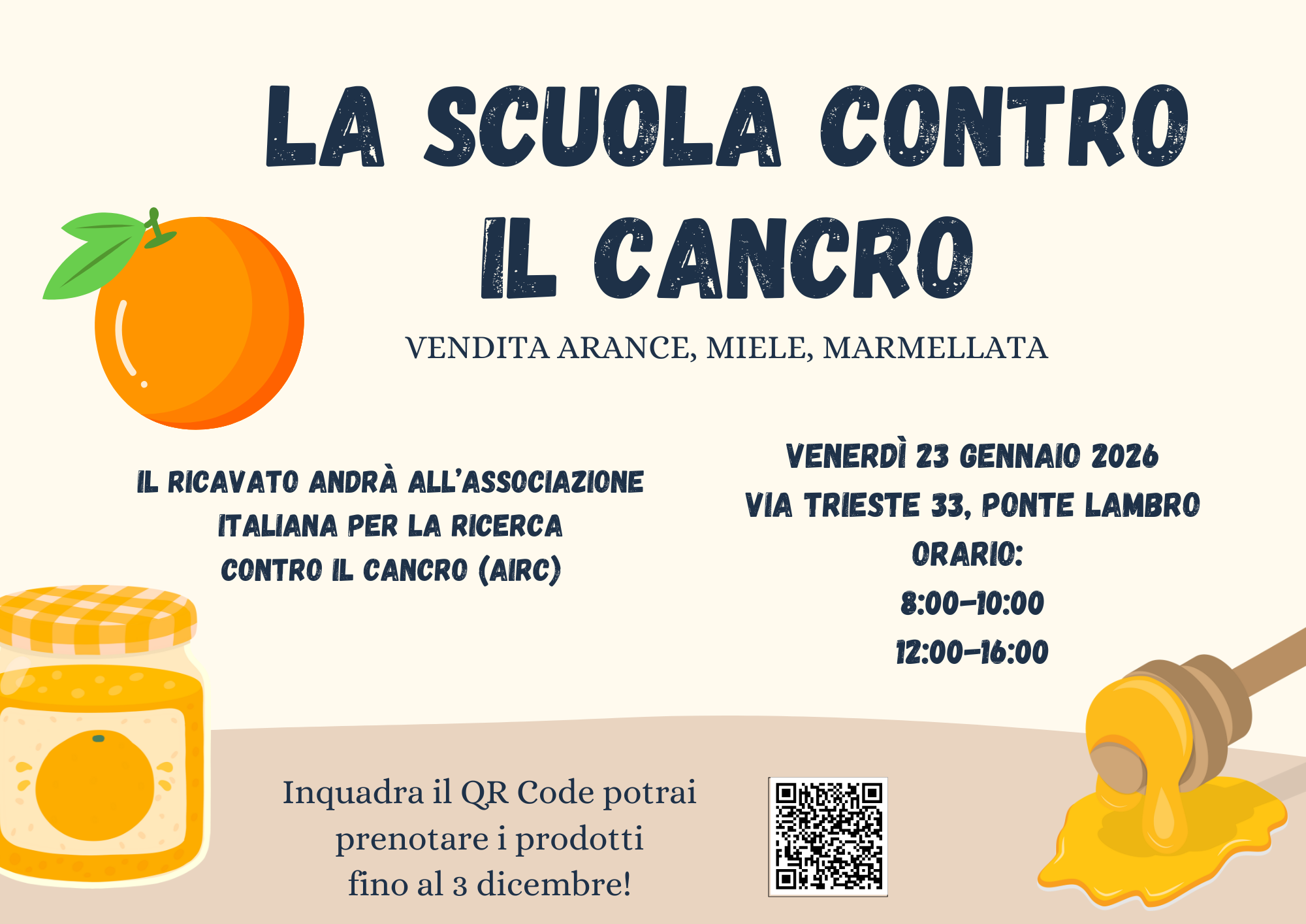 L’IC di Ponte Lambro promuove una giornata a favore dell’AIRC, a sostegno della ricerca contro il cancro, venerdì 23 gennaio 2026 dalle 8.00 alle 10.00 e dalle 12.00 alle 16.00. Partecipiamo numerosi e generosi!